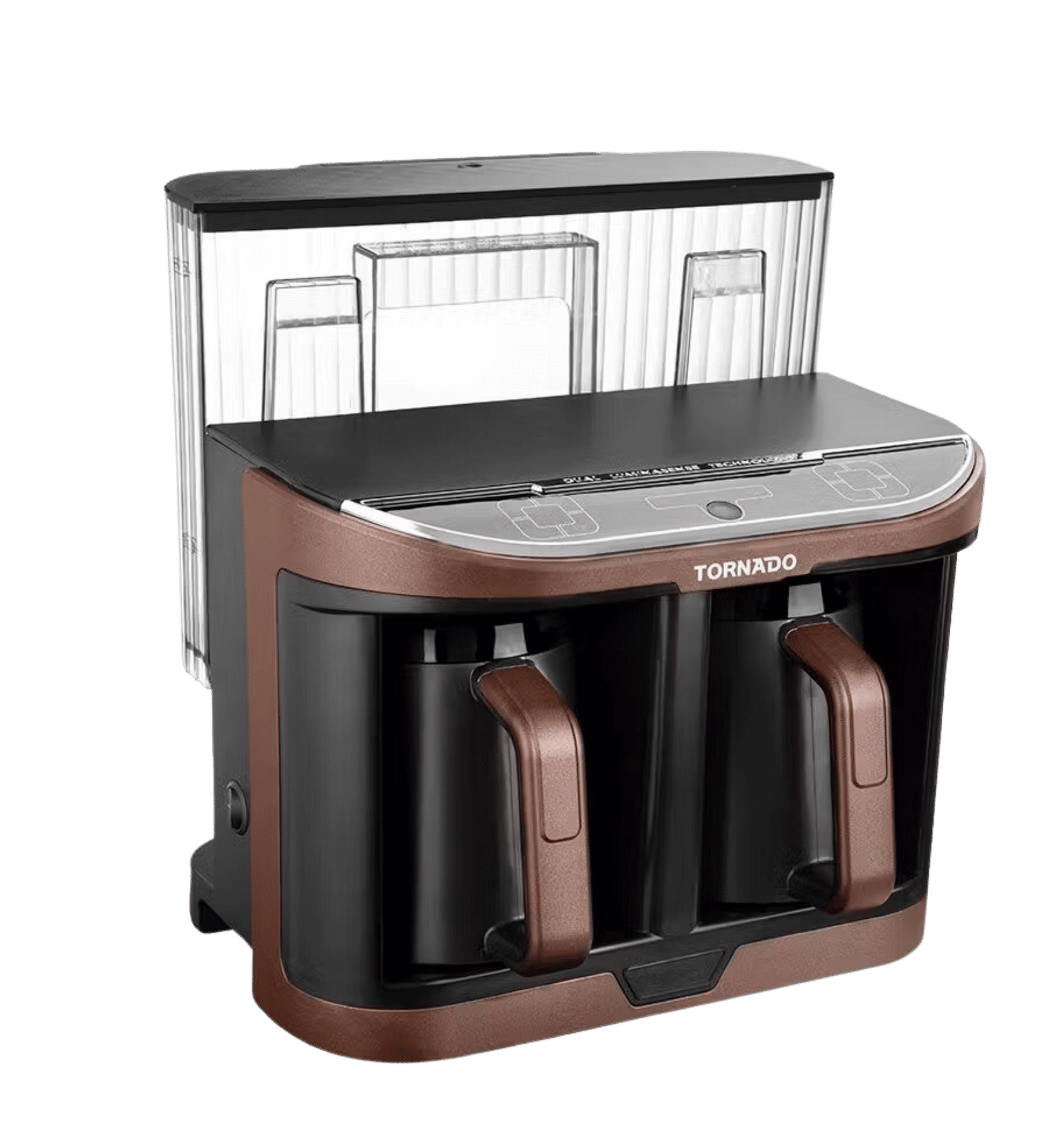 محضرة قهوة تركي أوتوماتيك تورنيدو مستوحاه من آلات تحضير القهوة التركية التقليدية المصممة بتقنية لومينا سينس التي تمنع فوران القهوة عند الانتهاء من تحضيرها ، تعتبر هذه المحضرة من أروع و أسهل ماكينات تحضير القهوة التركي حيث تمكنك من القيام بعمل 8 فنجان قهوة تركي في أقل من 3.5 دقيقة دون عناء و ذلك من خلال إضافة ( مقدار البن و السكر المناسبين ، السحب التلقائي للمياه من الخزان لعمل الكمية المطلوبة ) وهي تمتاز أيضاً بخاصية الفصل الأوتوماتيكي مع إصدار إنذار صوتي و ضوئي للتنبيه