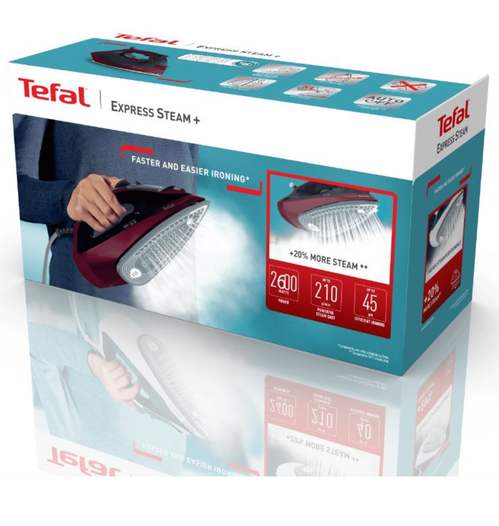 - انزلاق سريع مع تقنية قاعدة المكواة الخزفية الجديدة X- Glide المُحسَّنة ببخار إضافي بنسبة 20٪ مقارنةً بالبخار لمجموعات تيفال السابقة.