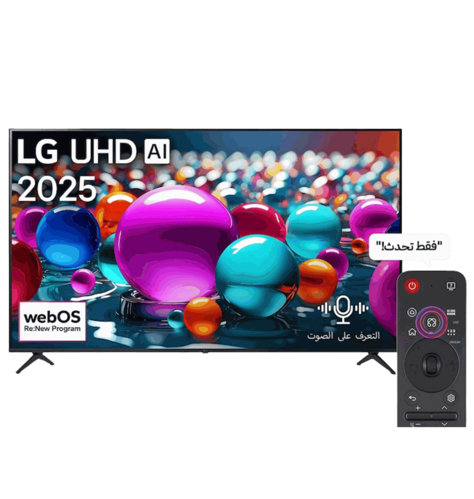 - نظام webOS مع AI Magic Remote يتيح لك البحث الذكي AI Search، والروبوت الذكي AI Chatbot، والمساعد الذكي AI Concierge، بينما يقوم برنامج webOS Re:New بتحديث الجهاز سنويًا لمدة 5 سنوات.
