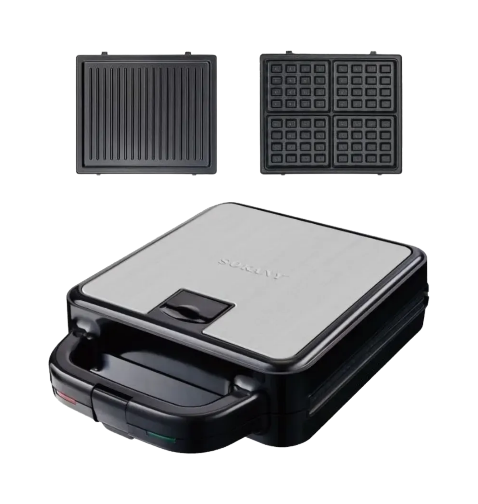 تصميم متعدد الوظائف: مزوّد بـ صفائح قابلة للتبديل لتحضير السندويشات، الوافل، وشوي اللحوم أو الخضروات.