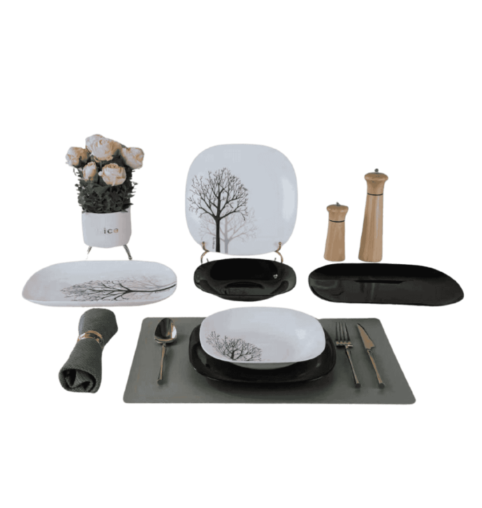 العلامة التجارية: الأندلسالنوع: طقم عشاءاللون: ابيض اسودالخامة: اركوبالعدد القطع: 27