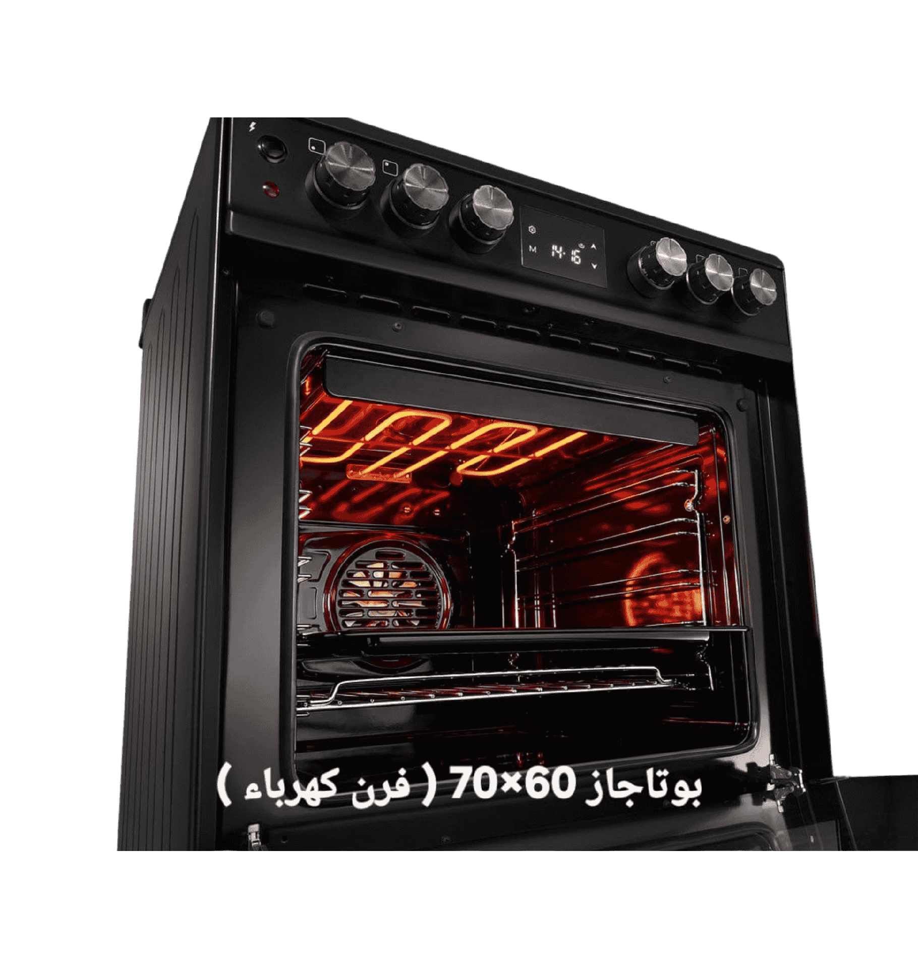 بوتاجاز غاز ٧٠ بتصميم فاخر وأداء عالي الجودة. و أمان كامل، تايمر و بيان حراره ديجيتال، مما يجعله مثاليًا للمطابخ الحديثة. يوجد مروحة للفرن، شعلة ثلاثيه وحامل أواني زهر قوي ومتين، لتجربة طبخ مريحة وفعالة.