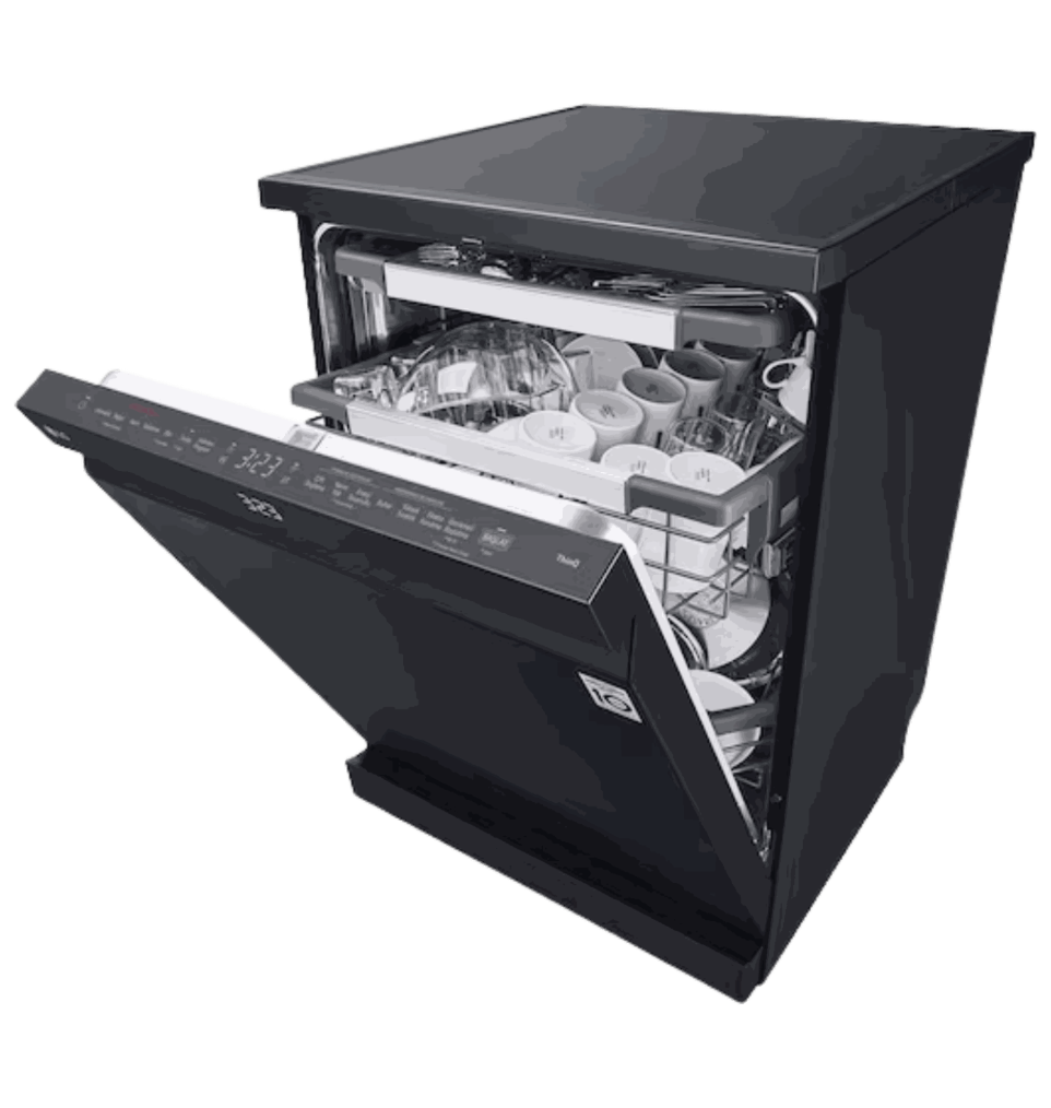 دورة الغسيل والتجفيف في ساعة واحدة⁴⁾ التي تقدمها LG تجمع مع التقنيات الحصرية لتقديم أطباق لامعة وجاهزة للطاولة في ساعة واحدة فقط.