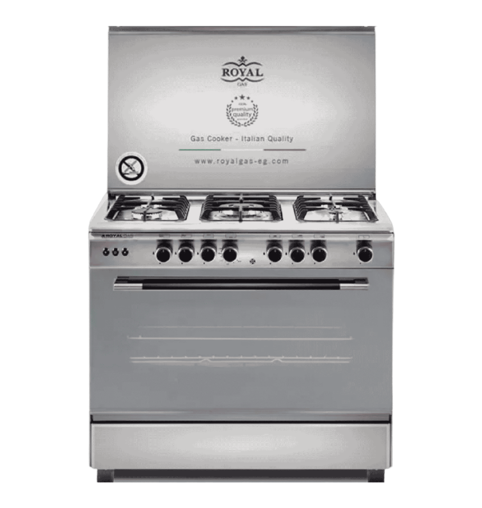 بوتاجاز رويال بيرفكت 2010244 90 سم ستانلس ستيل بالكامل، مزود بشعلات إيطالية عالية الأداء، مروحة توزيع حرارة مثالية، وإشعال ذاتي، مع تصميم عصري بدون فواصل لسهولة التنظيف، وضمان 5 سنوات.