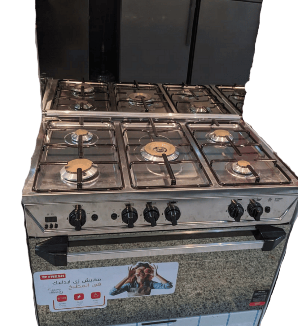 فريش بوتاجاز 90 سم سمايل ديچيتال ستانلس ستيل مزود بالمروحة بغطاء زجاج